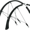Uniwersalny przedni lub tylny blotnik z perforowanymi otworami do montazu za pomoca opasek zaciskowych. Blotnik umieszczony na prednim widelcu ochrania twarz rowerzysty przed blotem wytwarzanym przez przednie kolo.