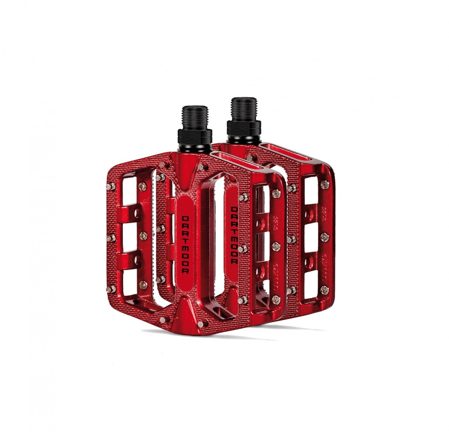 Lekkie pedaly platformowe wykonane z odlewanego aluminium. Cechuja sie bardzo niskim profilem, mocna budowa i bardzo dobra przyczepnoscia. Os wykonana ze stali Cr-Mo. Wyposazone w lozyska kulkowe i tuleje slizgów.