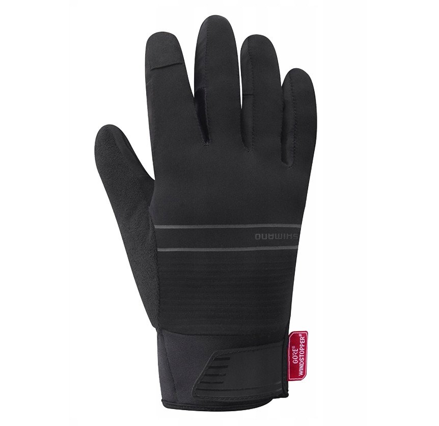 Rekawiczki Shimano Windstopper czarne z 3-warstwowa tkanina WINDSTOPPER® zapewniajaca ochrone przed wiatrem i utrzymywanie ciepla.