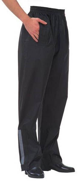 Wygodne spodnie przeciwdeszczowe holenderskiej marki Fastrider, wykonane z nylonu pokrytego PVC. Szeroki, elastyczny sznurek w pasie daje maksymalny komfort. Nogawka spodni zapinana na zamek z zakladka na rzepy. Odblaskowe paski na nogach.